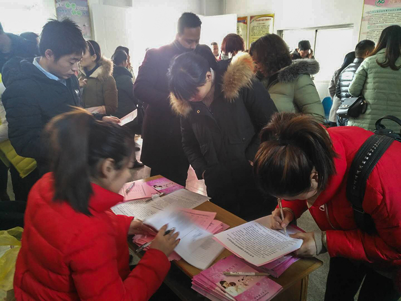 2月26日一大早,一对对夫妇持身份证、空腹等候,在计生办门口排起长队,这离不开各村计生专职主任的及时通知和耐心嘱咐。免费孕前检查项目主要包括优生健康教育、病史询问、体格检查、咨询指导、早孕及妊娠结局追踪随访等。检查完毕后,服务人员给他们免费发放叶酸和优生优育手册,接着,在综合服务大厅,工作人员为他们办理计生服务手册。一站式的服务让群众享受到便利,感受到温暖。此次活动共检查110多人,发叶酸70余份,优生优育手册80余册。