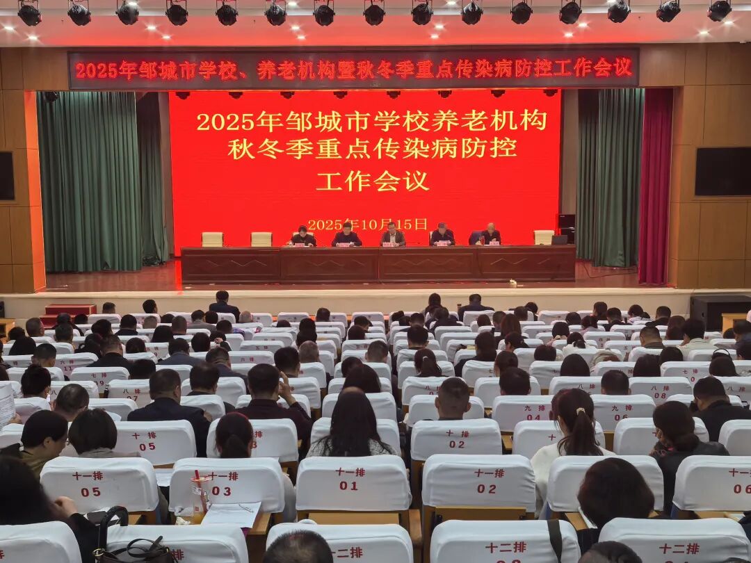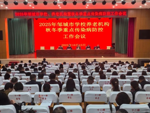 为进一步加强全市秋冬季传染病预防和控制工作,减少学校、托幼、养老机构聚集、暴发疫情的发生,10月15日,邹城市卫生健康局联合市教育和体育局、民政局在邹城第九中学召开全市学校、养老机构暨秋冬季重点传染病防控工作会议,市卫生健康局党委副书记、市疾控中心党委书记刘䶮,市教育和体育局党委委员冯广伟,市民政事务中心副主任刘阳阳出席会议并讲话,市疾控中心主任王振前主持会议。会议邀请山东省疾控中心传染病防制专家吴巨龙进行现场授课,全市卫生及教育、民政部门相关工作人员200余人参会。