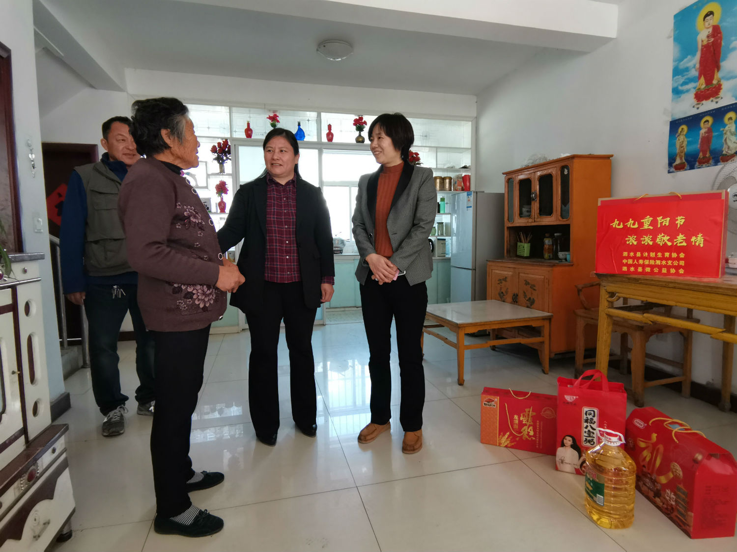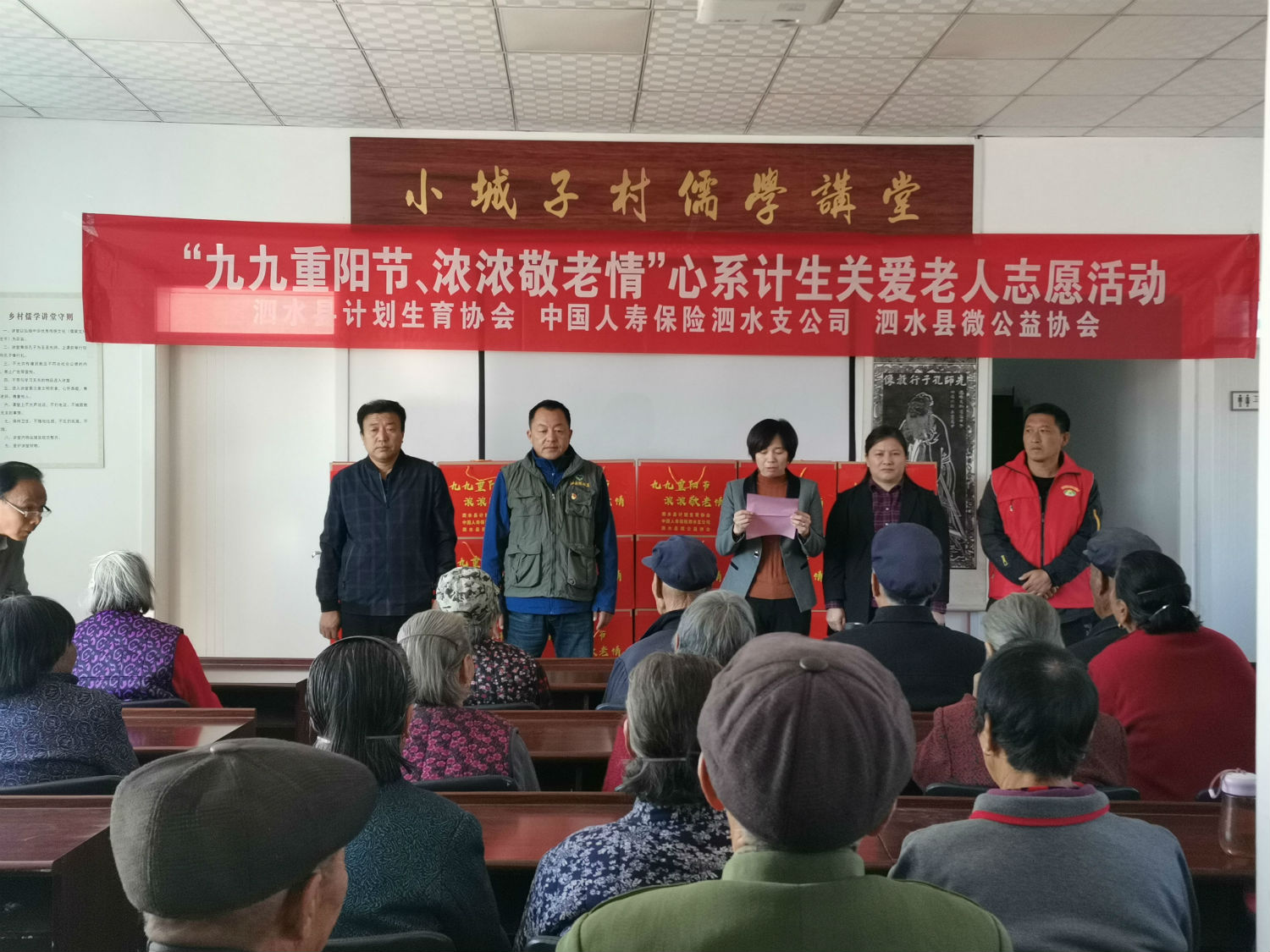 为弘扬中华传统美德,充分发挥计生协会桥梁纽带作用,积极营造尊老、敬老、爱老、助老的社会和谐氛围。在重阳节来即将来临之际,10月24日,泗水县计划生育协会联合中国人寿保险公司泗水分公司、泗水微公益协会,组织计生协会志愿服务者到圣水峪镇小城子村开展主题为“九九重阳节,浓浓敬老情”关爱老年人志愿服务活动。县计划生育协会常务副会长韩梅、副会长闫俊宏,中国人寿保险公司泗水分公司、泗水微公益协会、圣水峪镇有关负责同志和圣水峪镇小城子村部分村民参加了活动。