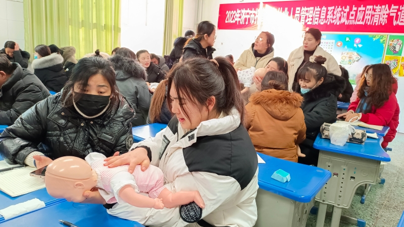 2023年济宁卫校是我省唯一一家获得开展全国托育服务从业人员培训管理信息系统试点应用工作资格的单位。由于微山县距离济宁市区比较远,参加培训的老师来去不方便,微山县卫健局积极对接济宁市卫健委和济宁卫校,邀请专业技术人员携带操作器材和设备来微山县进行应急急救专项培训和考核。