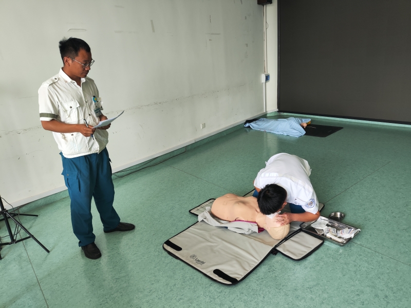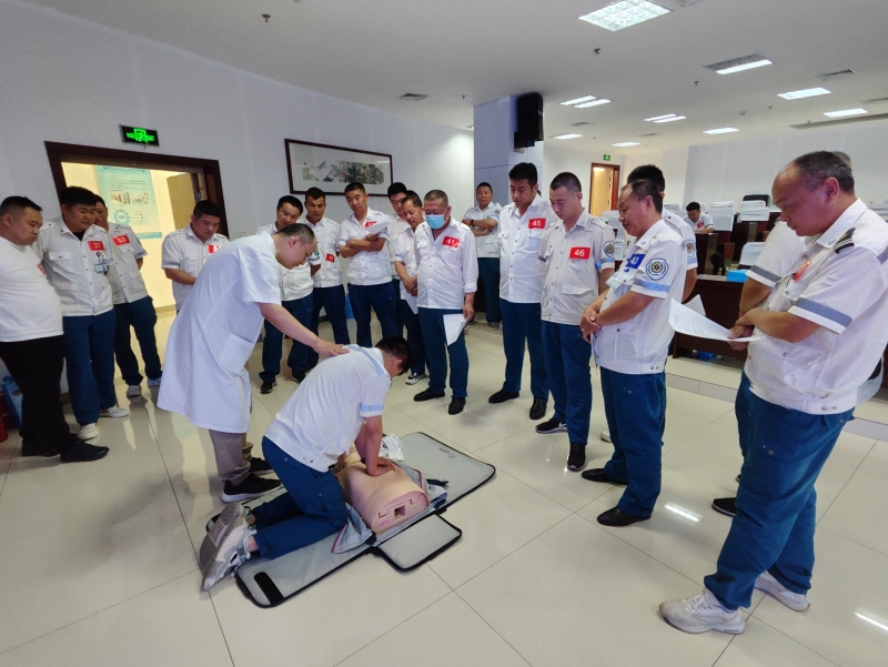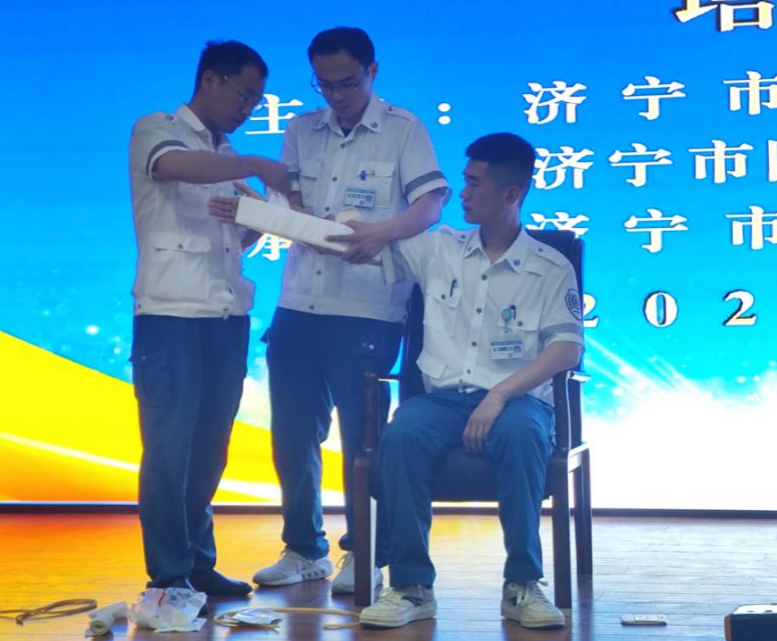 随后,济宁市第一人民医院的急救专家围绕心脏骤停、多发创伤、电击伤、溺水、气道异物、中暑等突发疾病及意外伤害的紧急救治进行授课,手把手教授学员心肺复苏术、止血包扎术、海姆立克急救法、AED的使用方法等多项急救技能,并带领学员们分组开展实操演练。